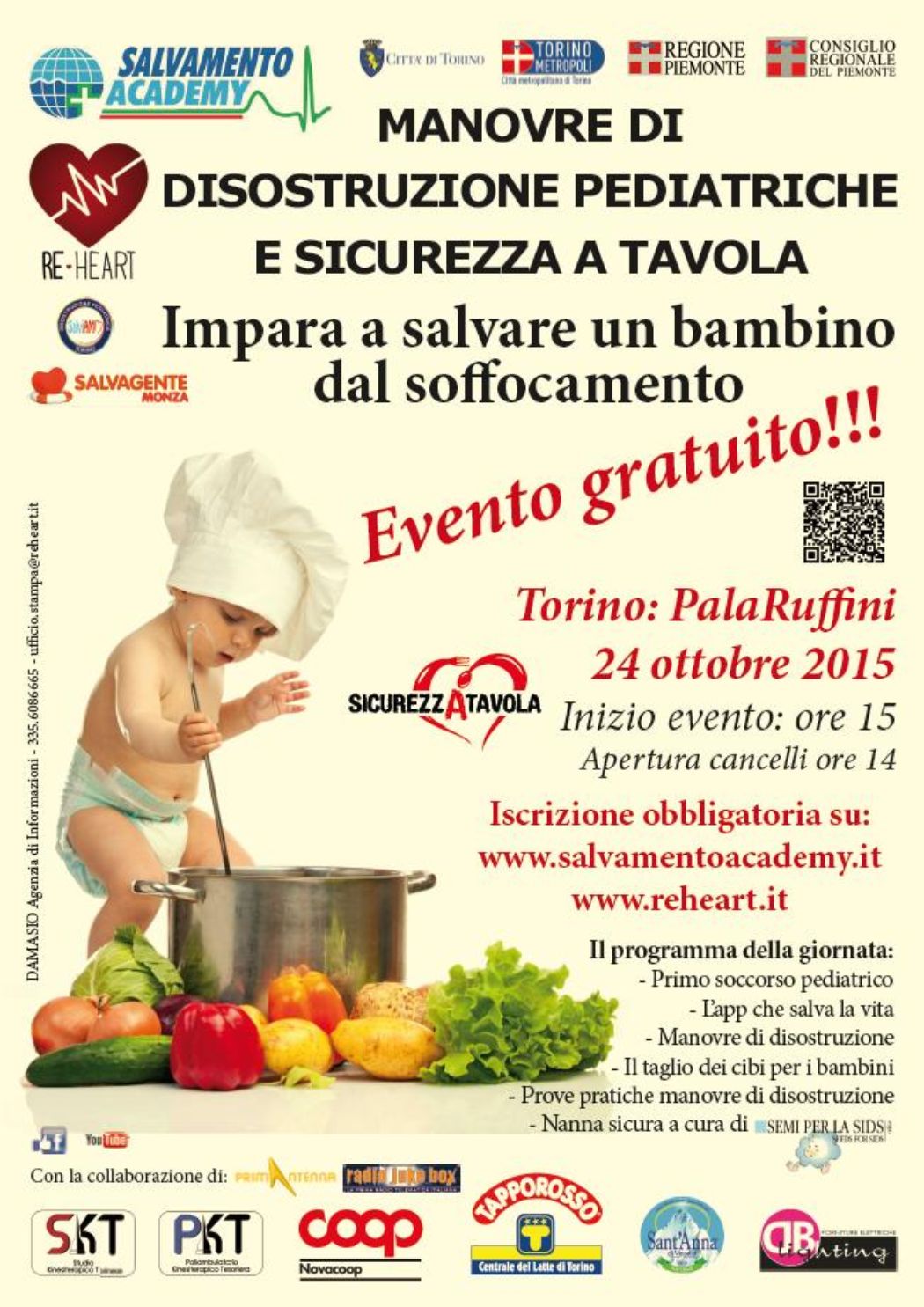 Sabato 24 ottobre p.v. presso il Palaruffini di Torino si terrà la manifestazione dedicata alla “Sicurezza a tavola e Manovre di disostruzione pediatriche”.