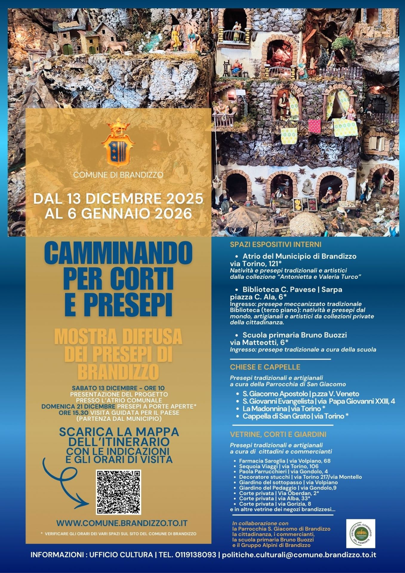 La mostra diffusa di presepi denominata “Camminando per corti e presepi”, allestita presso spazi espositivi pubblici e privati, messi volontariamente a disposizione dai cittadini, sarà fruibile dal 13 dicembre 2025 al 06 gennaio 2026.