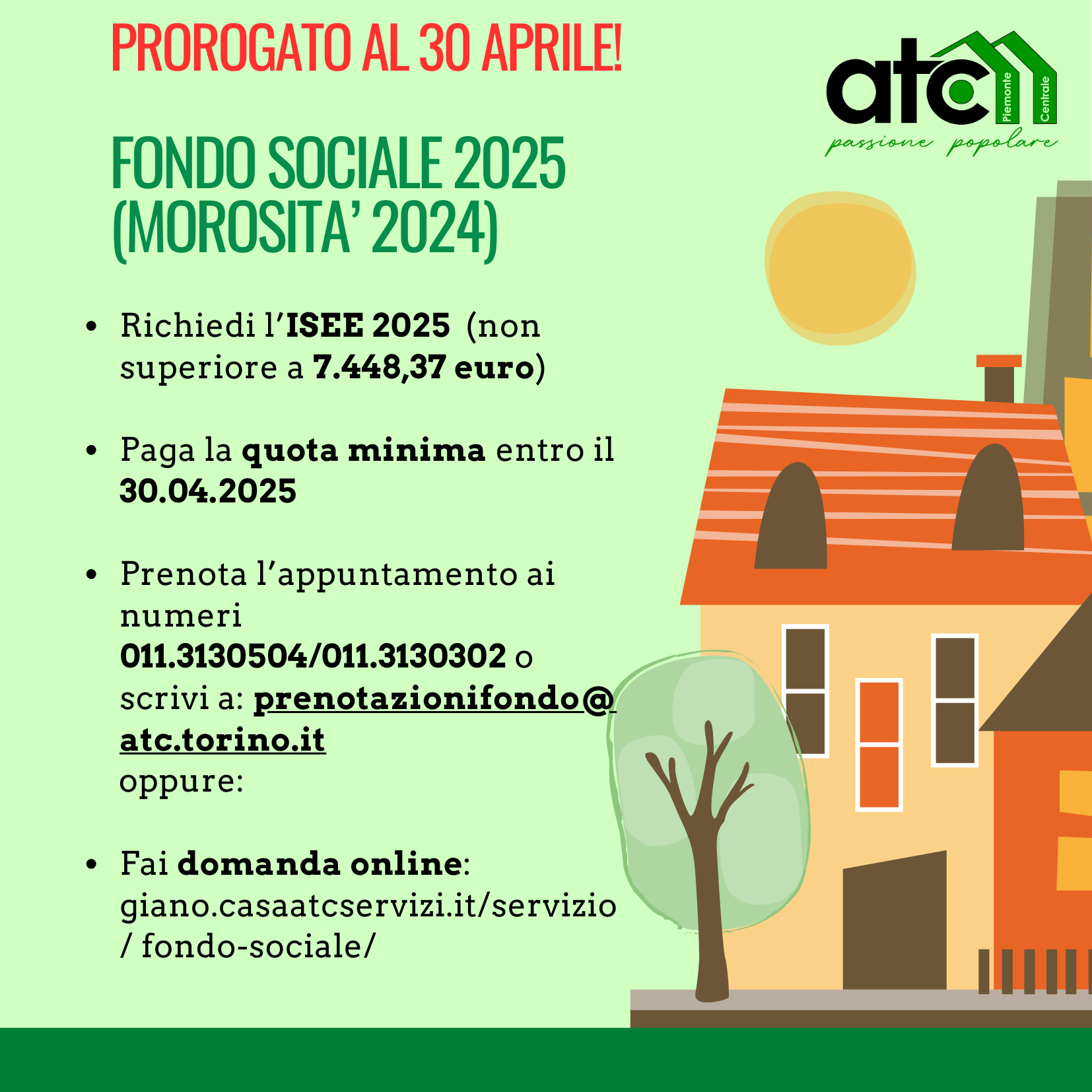 Si ricorda che la domanda di fondo sociale può essere presentata, oltre che in presenza agli sportelli Atc, anche online attraverso il portale dei servizi digitali dell'Agenzia.
