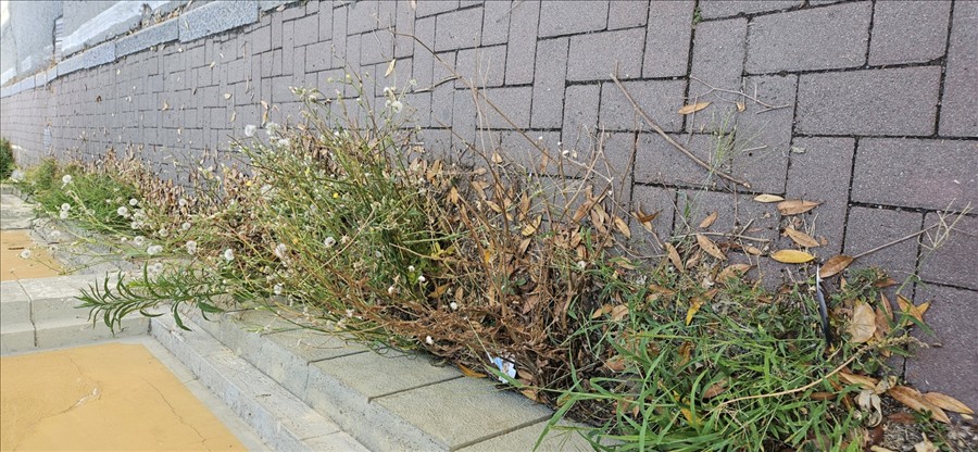 Marciapiede ingombro da erbacce