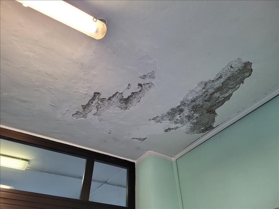 La problematica era dovuta ad infiltrazioni dal tetto dell’ingresso. Nel periodo estivo il Comune ha provveduto ad intervenire in merito, grattando successivamente il soffitto dell’ingresso. Sono inoltre state ultimate le operazioni attraverso ula ritinteggiatura del soffitto.