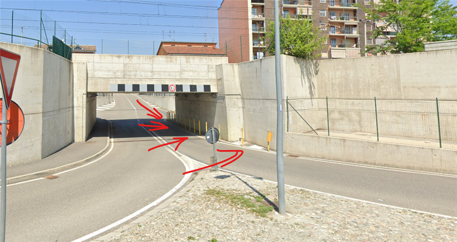 Presso il sottopassaggio che collega Via Montesanto/Prati Neivati e Via Gondolo, arrivando da quest'ultima è frequente incontrare pedoni sulla sede stradale non a loro riservata. In quel punto non si ha visibilità e l'automobilista non può ritrovarsi pedoni nel bel mezzo del sotto passaggio o durante la svolta. C'è un marciapiede sul lato opposto che non viene utilizzato! La situazione è potenzialmente pericolosa, spesso si incontrano bambini, anziani, passeggini, cani al guinzaglio sulla sede stradale ed il rischio di investimento è alto.