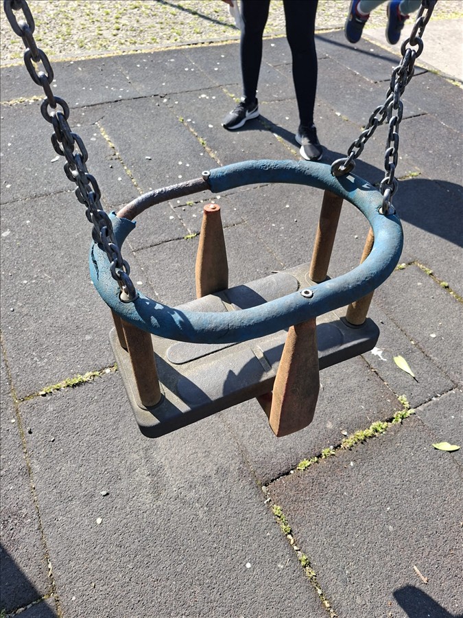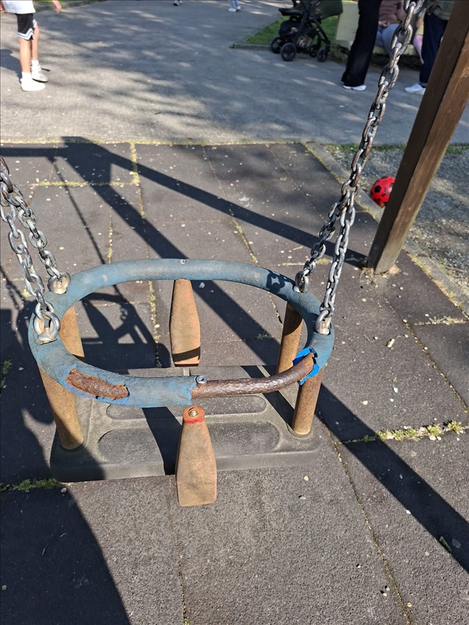 L' altalena per i bambini piccoli al parco degli alpini vicino al cimitero è rotta allego foto