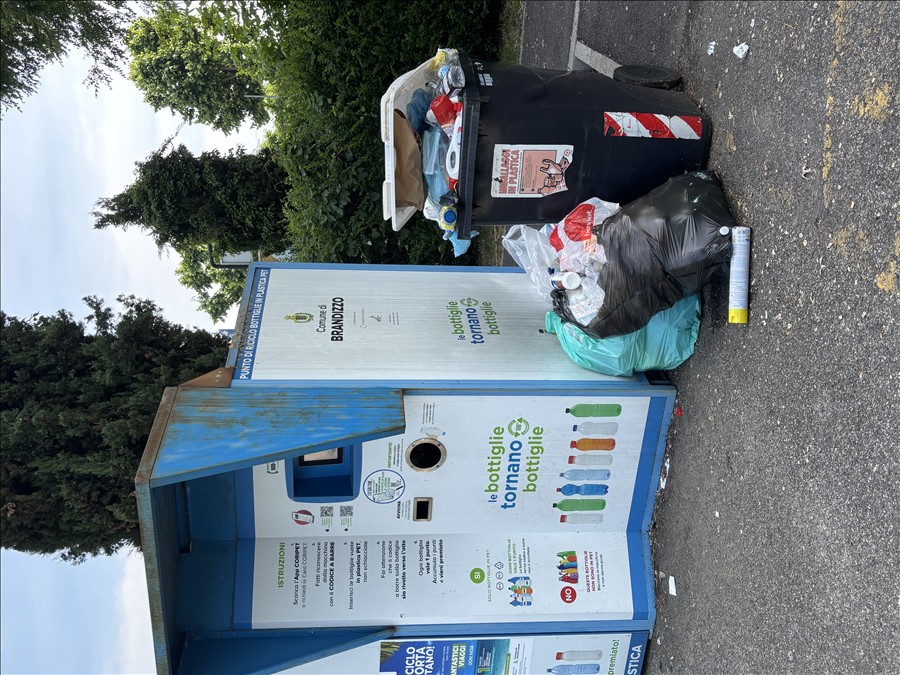 Parcheggio area cimiteriale - si segnala la presenza da tempo di rifiuti abbandonati in corrispondenza della recinzione dell'ex eco centro e attorno all'ecocompattatore delle bottiglie in plastica.