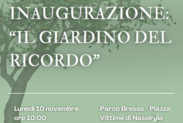 Lunedì 10 novembre alle ore 10.00, verrà inaugurato presso il Parco Bresso - Piazza Vittime di Nassiryia il Giardino del Ricordo, in memoria dei cinque operai morti sul lavoro il 30 agosto 2023 a Brandizzo.