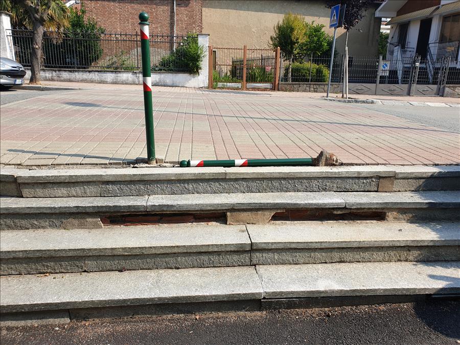 pali sradicati e gradini rotti e pericolosi per il passaggio dei bambini