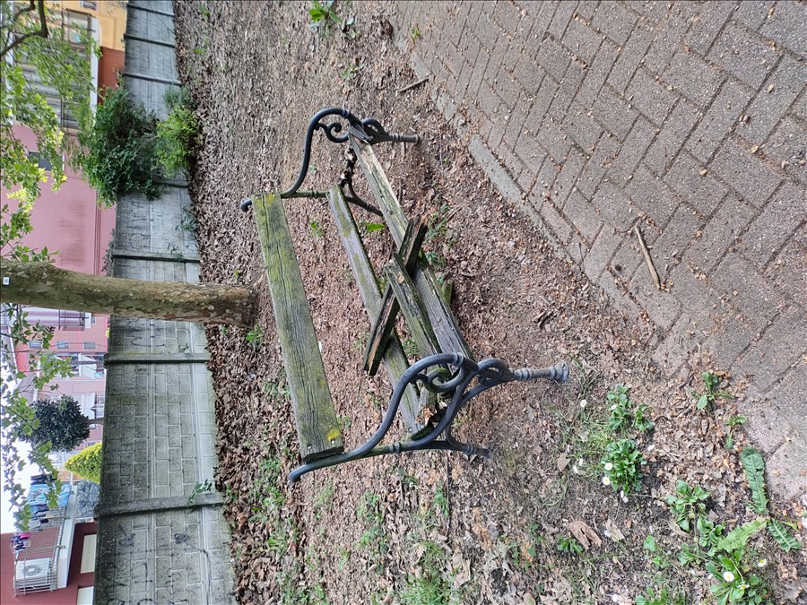 Nel parco vicino al palazzetto Alex Costiglola c'è una panchina completamente rotta.