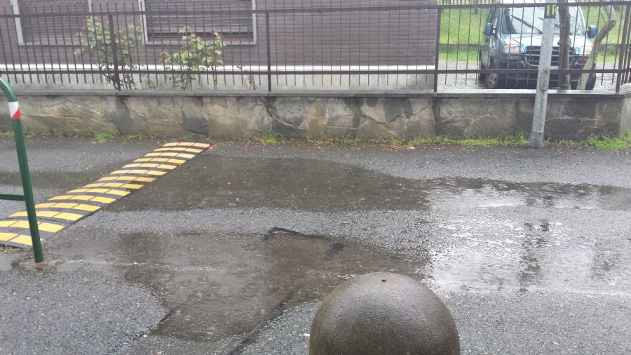 Il problema è che ora via gondolo è diventata molto trafficata (pirtroppo)..quindi potete immaginare quelle pozzanghere come vengono affrontate dalle auto..la mia cada dista meno di 2 m dalla pozzanghera....