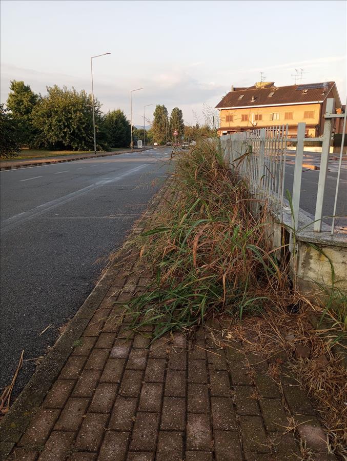 Con la presente segnalo l' impraticabilità del marciapiede sito in via Chivasso (fronte area fieristica, si Google Maps riportata come via nilde iotti o via pastero) causa erba alta più di 1 m in alcuni punti: con carrozzine e passeggini obbliga a scendere in mezzo alla strada. Grazie per la disponibilità e buon lavoro.