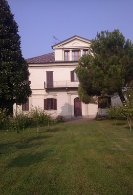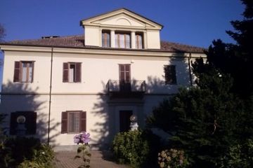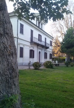 L’odierna via Piave, lungo cui è ubicato l’accesso alla villa, un tempo era infatti denominata via “del Castello” e un bel catasto figurato del ‘700 (dal Cabreo Nicolis del 1732-1734, oggi custodito nell’archivio storico di Brandizzo) localizza chiaramente l’edificio denominato “Castello” nel sito in cui sorge la Villa. Dal Cabreo è desumibile la conformazione del complesso originario: un edificio padronale con accesso da una doppia rampa di scale, arricchito dal parco da cui si dipartiva il viale centrale che portava ad un bosco sempre di proprietà dei Conti Nicolis, ai confini con Chivasso. La Villa venne edificata su quell’impianto settecentesco nei primi decenni dell’800.