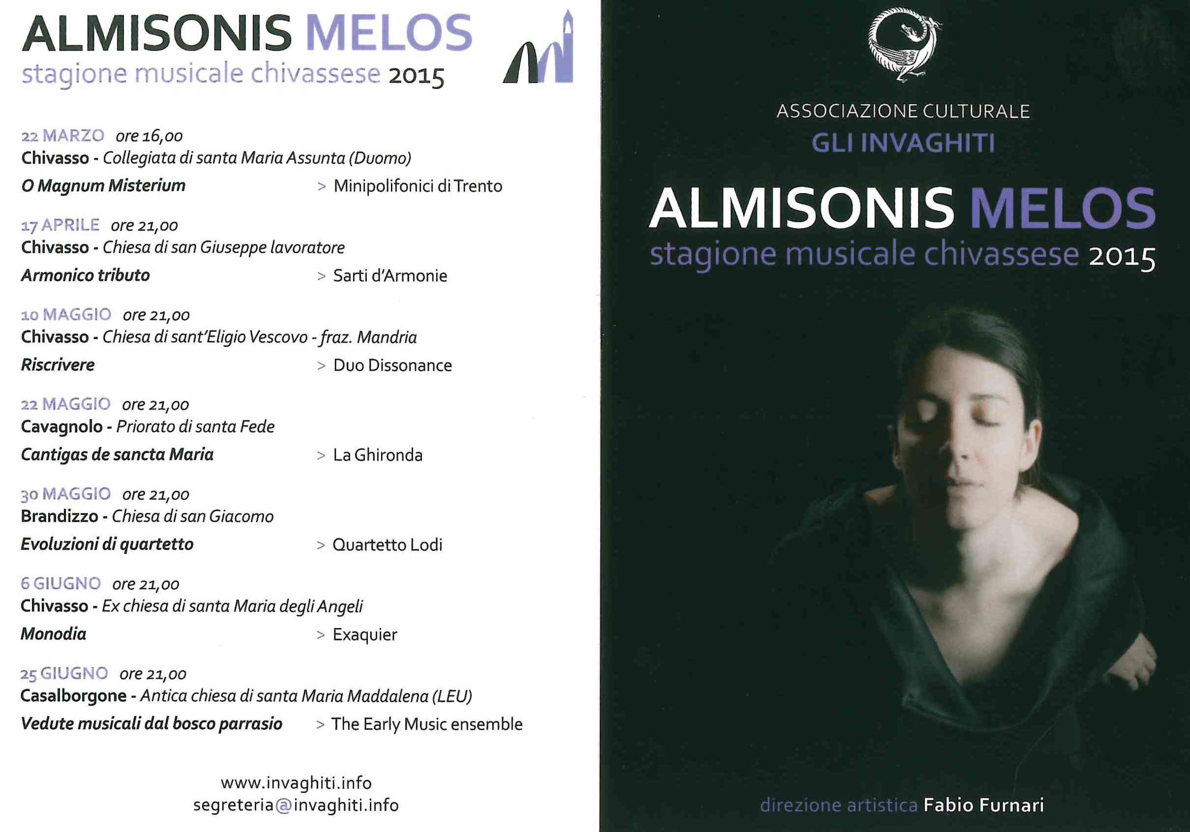 Nell'ambito di "Almisonis Melos", stagione musicale chivassese 2015, sabato 30 maggio, ore 21.00, presso la Chiesa di San Giacomo Apostolo, esibizione del "Quartetto Lodi" con il concerto "Evoluzioni di quartetto. Dal contrappunto di Bach a Mozart e Mendelssohn".